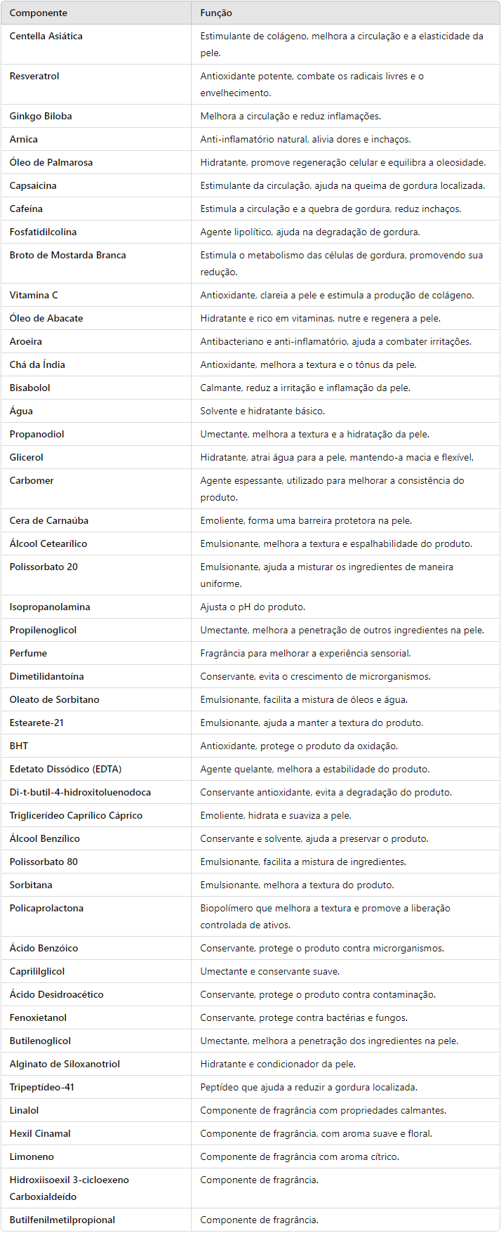 Os resultados podem variar de pessoa para pessoa, mas muitos usuários relatam melhorias visíveis na aparência da pele e redução da celulite em aproximadamente 4 semanas de uso contínuo.
